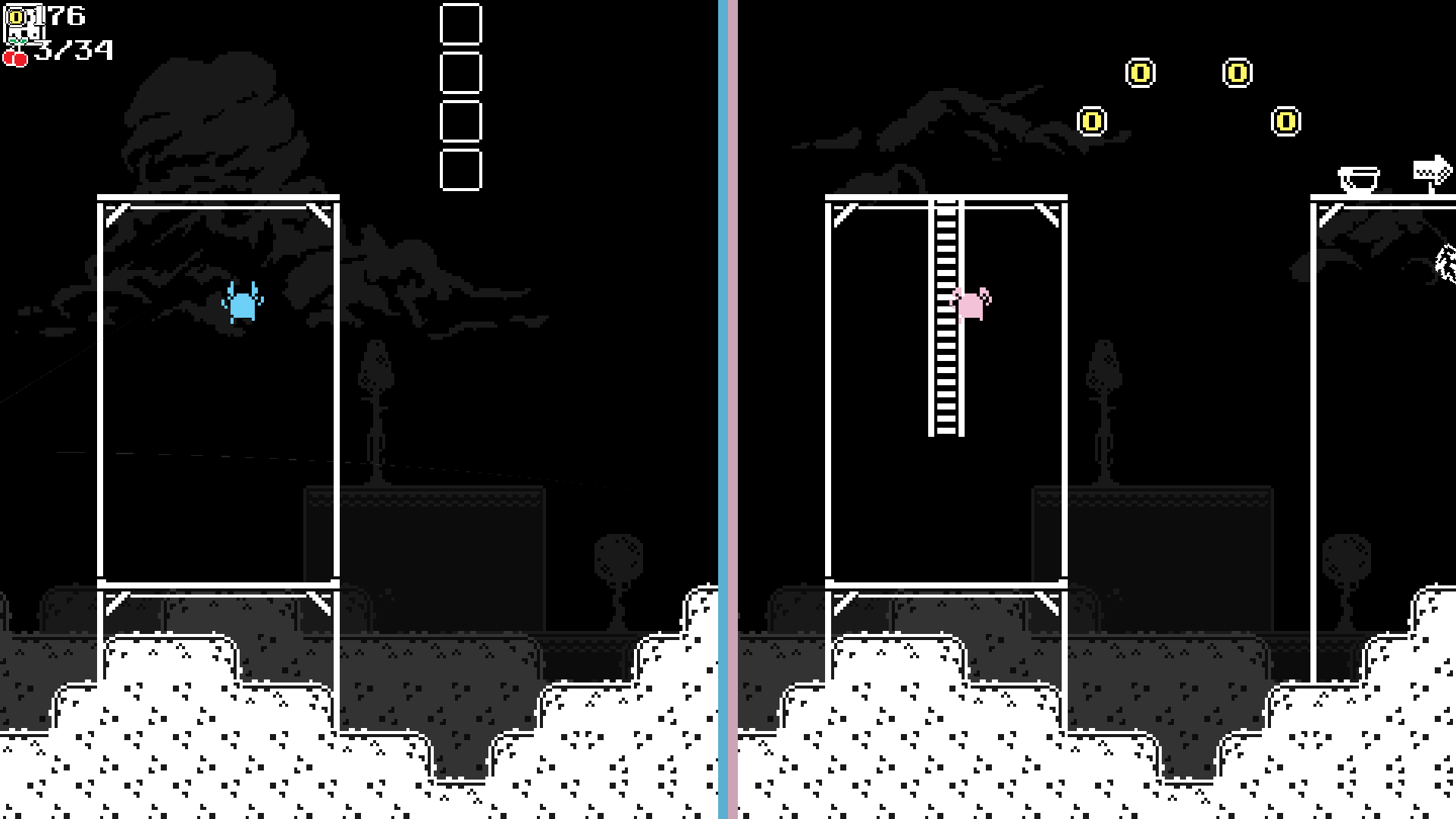 Platforms, obstacles, and collectables that appear visible on one screen may be hidden on the other. Swap your attention strategically back and forth in order to navigate the mind-bending parallel worlds of Seeing Double.