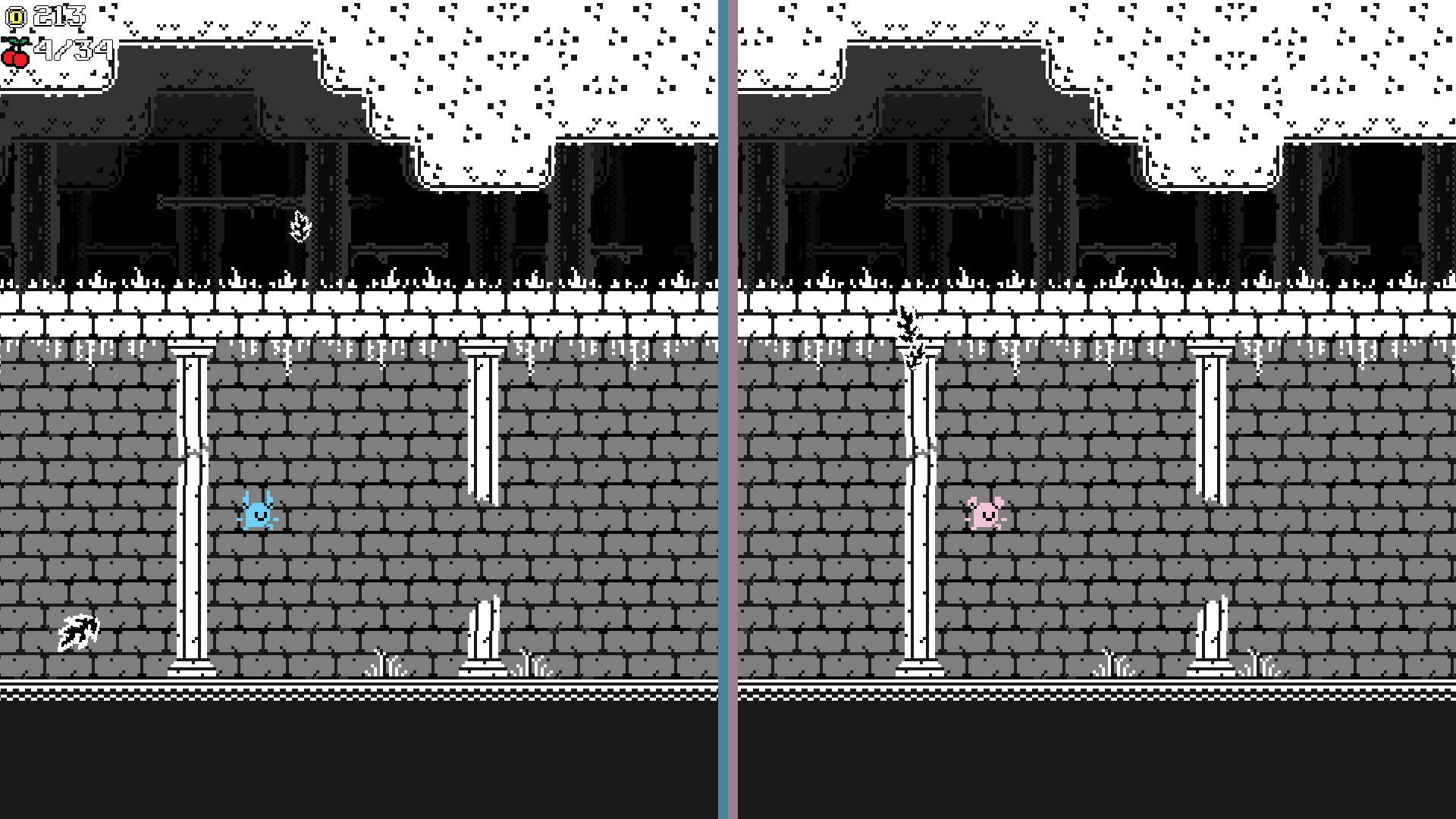 In Seeing Double you control two characters, Pitter and Patter, in perfect sync with each other on two separate screens.